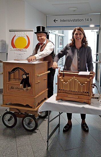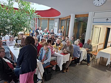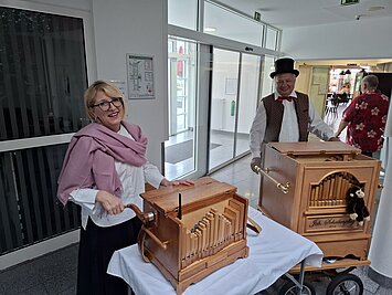 Wetterbedingt wurde das diesjährige Herbstfest in diesem Jahr nach innen verlegt. Die Leiterin des medbo Café zweitesLEBEN hatte das Foyer des Zentrums für Neurologische Rehabilitation spontan umgestaltet. So konnten alle Gäste, einschließlich der musikalischen Begleitung durch die Ukulele Fever Band und des Drehorgelspielers Johann Scheibenpflug, diesen Nachmittag genießen.