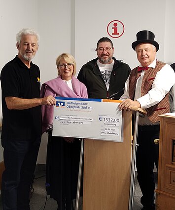 Zum einen kam eine stattliche Summe von 1.532 € aus dem Erlös seines Benefizkonzerts vom 27. Juni 2025 in Pfatter zusammen. Dabei erhielt er wieder Unterstützung von Andreas Hanauer, der die Getränke spendete, von der Metzgerei Zellmer aus Langenerling sowie von seinen Nachbarn den Familien Bönisch und Stadlbauer. Bei der Musik wurde er begleitet von Sebastian, Max, Lena und Paul Leonhard.