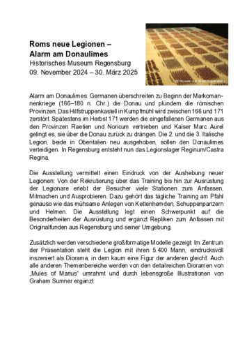 Bei einer Führung im Historischen Museum ging es dabei ganz spannend um das Leben und den Alltag römischer Legionäre im heutigen Regensburg zur Zeit der Markomannenkriege. Gründer dieser Legionen war kein Geringerer als Kaiser Mark Aurel.